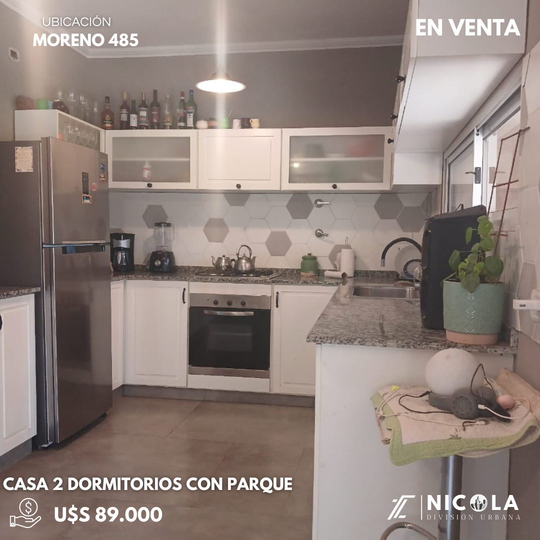 Ubicación: Moreno 485 Caracteristicas: Casa sobre un lote de 368 metros totales (12,3x31,3), que de dispone se dos dormitorios, baño, sala de estar, cocina comedor nueva, lavadero, galería con parrilla, garaje y patio. Servicios: Cuenta con todos los servicios. Precio: U$S 89.000