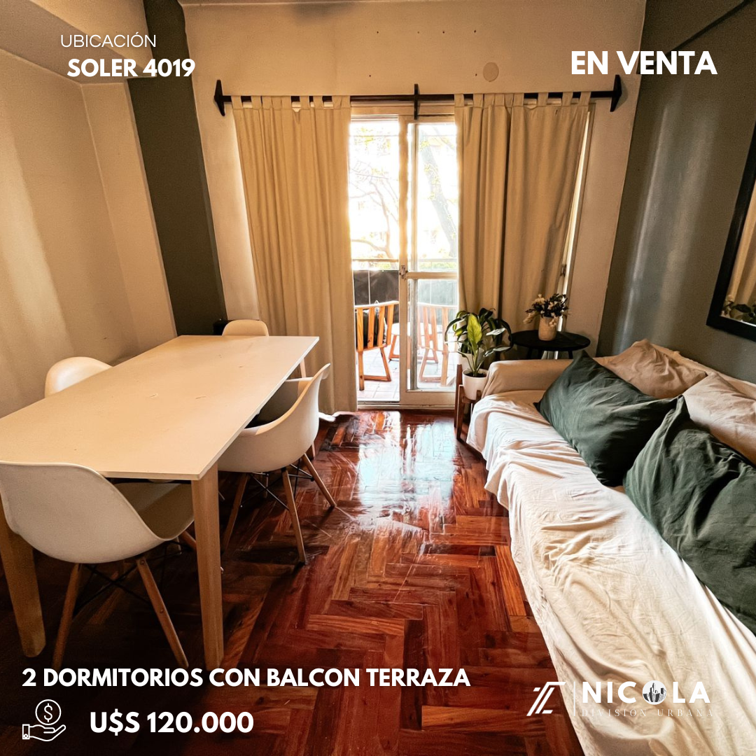 Caracteristicas: Departamento en venta en una de las mejores zonas de Capital Federal, a metros del shopping alto palermo, el mismo está compuesto de dos dormitorios, baño, lavadero, cocina, comedor y un amplio balcón terraza. Excelente construcción.